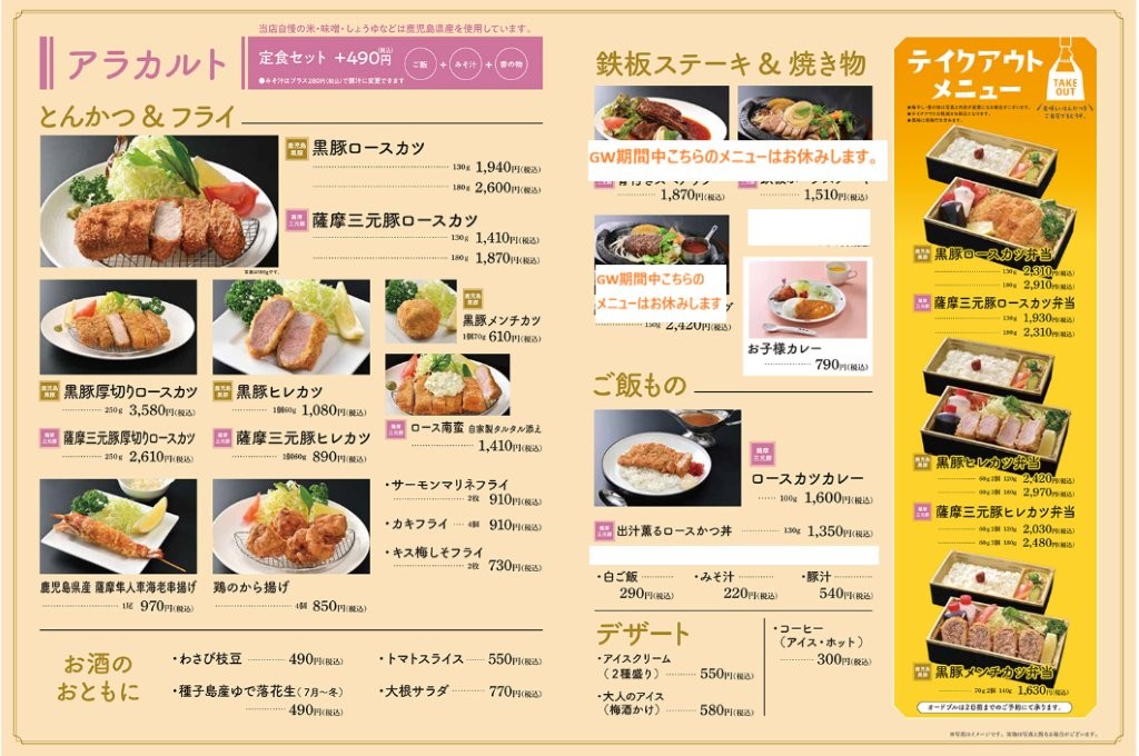 上記のGW期間中(5/3~5/6)は、一部のメニューにつきましても提供をお休みさせていただきます。